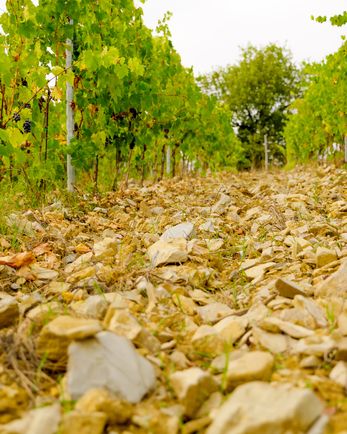 I terreni calcarei permettono al suolo di respirare anche nei periodi più caldi, mentre i boschi che circondano i filari rinfrescano le uve durante la notte, favorendo l’equilibrio e la qualità degli acini. I vigneti, esposti a Sud, Sud-Ovest e Sud-Est, beneficiano della luce ideale.